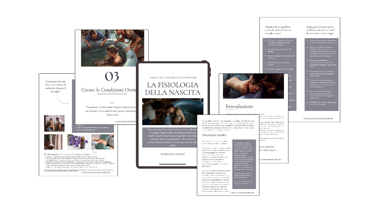Pratiche di Yoga, Toolkit di oltre 40 pagine, visualizzazione per la nascita, tecniche di digitopressione e molto altro.